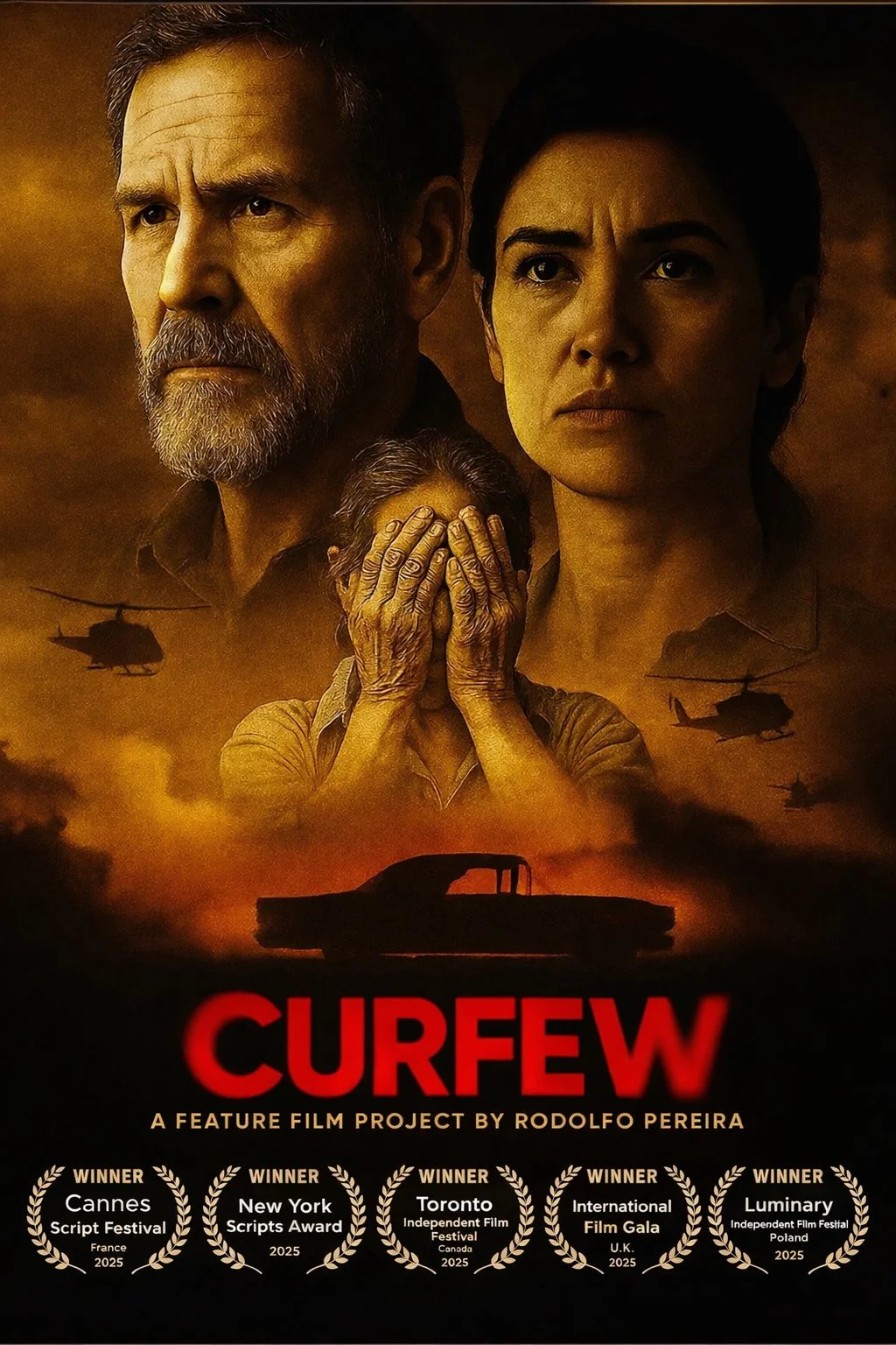 Rodolfo Pereira is a Peruvian writer-director whose work bridges cinematic storytelling and journalistic urgency. Developed over many years, CURFEW emerges from a lived understanding of how violence, propaganda, and institutional silence deform public truth.